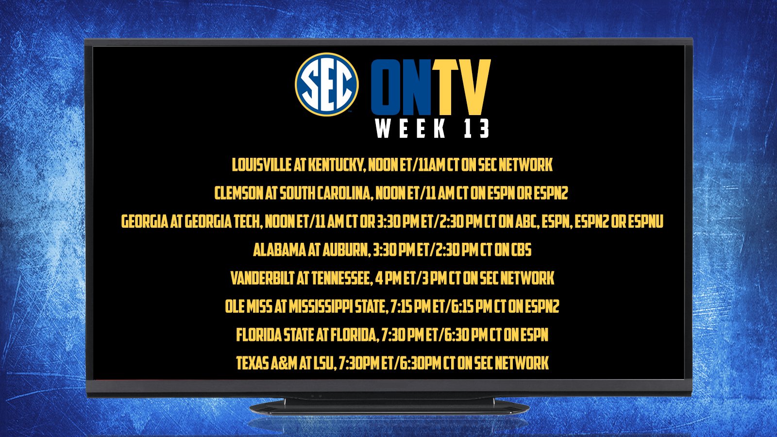 As we haven't suffered enough the UK/UL game on November 28th will be at noon. The SEC Network will be televising. Watch if you dare........