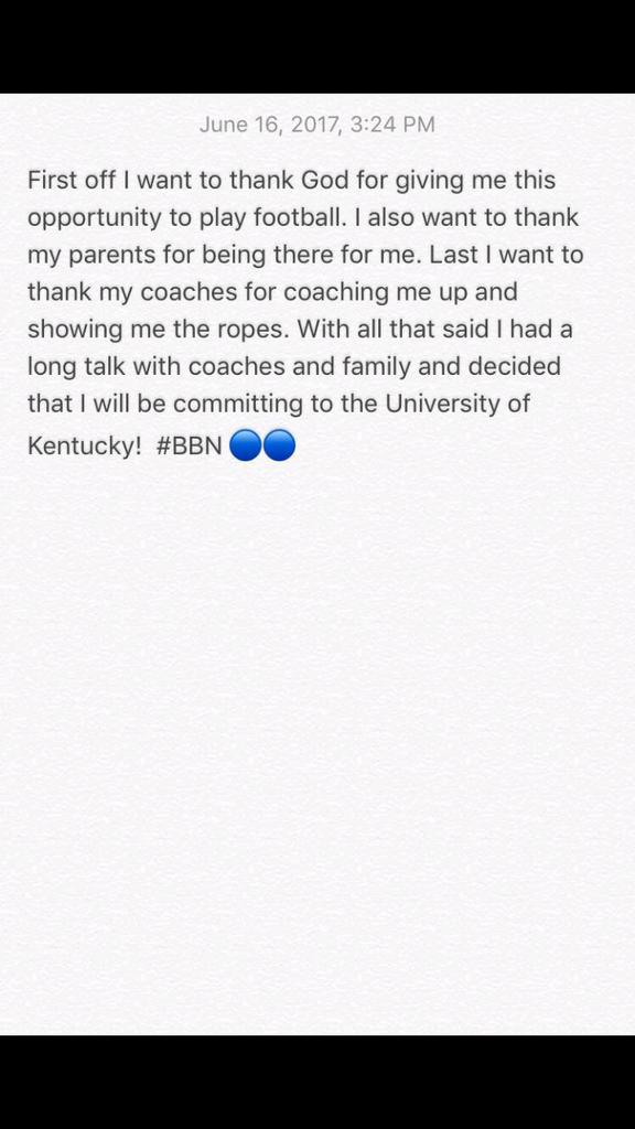 DeAndre Square, linebacker from Michigan, committed to the Cats. He had offers from LSU, Michigan State, and many others. Can someone post a link?
